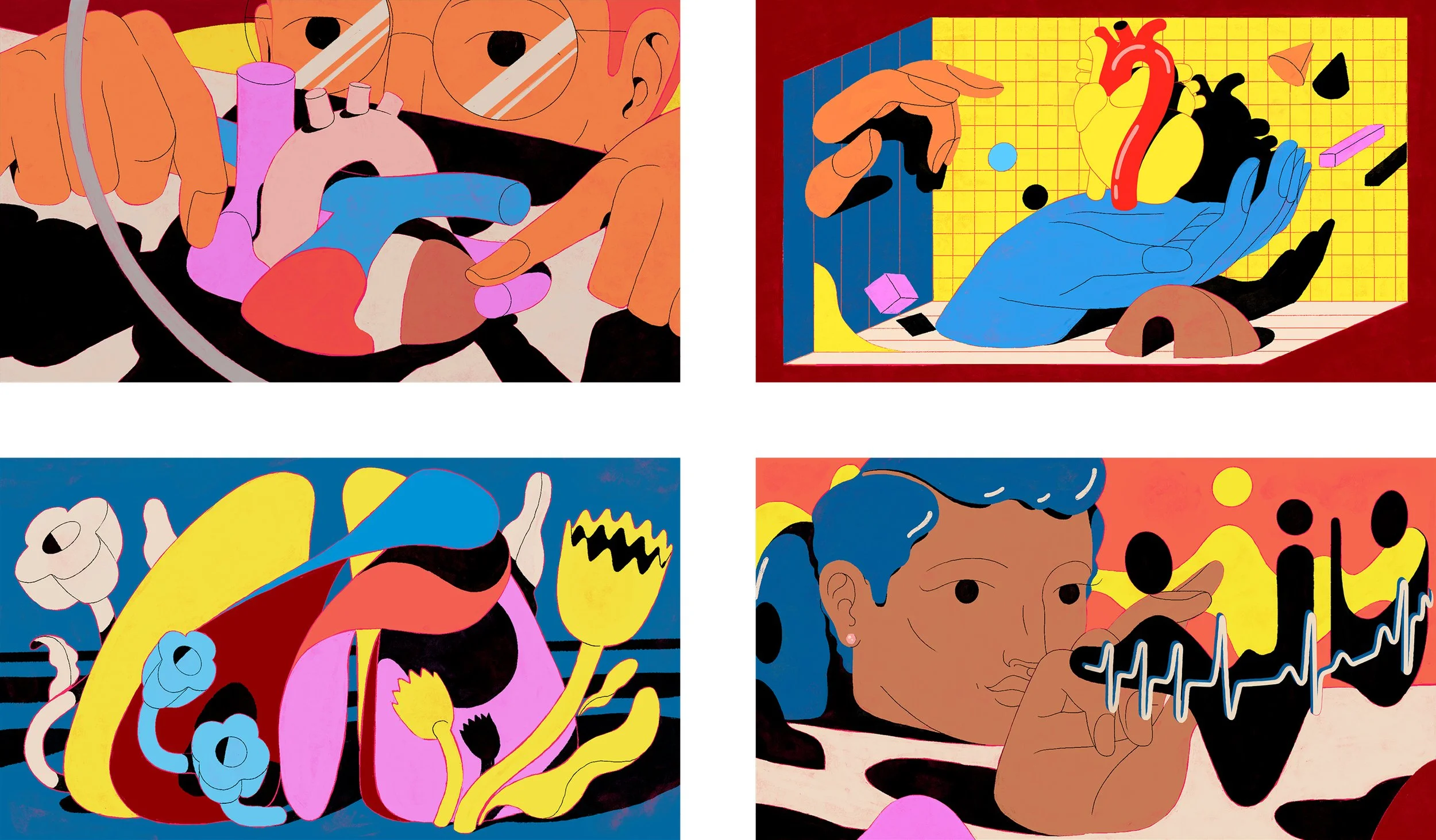 Seven Elm partnered with Cedars-Sinai to shape the visual language of its annual reports across the Smidt Heart Institute, Cedars-Sinai Cancer, and Cedars-Sinai Neurosciences—three of the institution’s leading clinical and research programs. In close collaboration with internal teams, we developed visual systems that translated complex medical research into clear, engaging narratives. Each report was built around a distinct conceptual framework, brought to life through commissioned illustration and photography. We worked with artists including Bryce Wymer, Sofia Ivy, Gemma O’Brien, Owen Gildersleeve, and Roger Kisby, shaping a cohesive visual language across platforms. The result is a flexible, evolving system that supports multiple reports while maintaining clarity, sophistication, and visual impact.